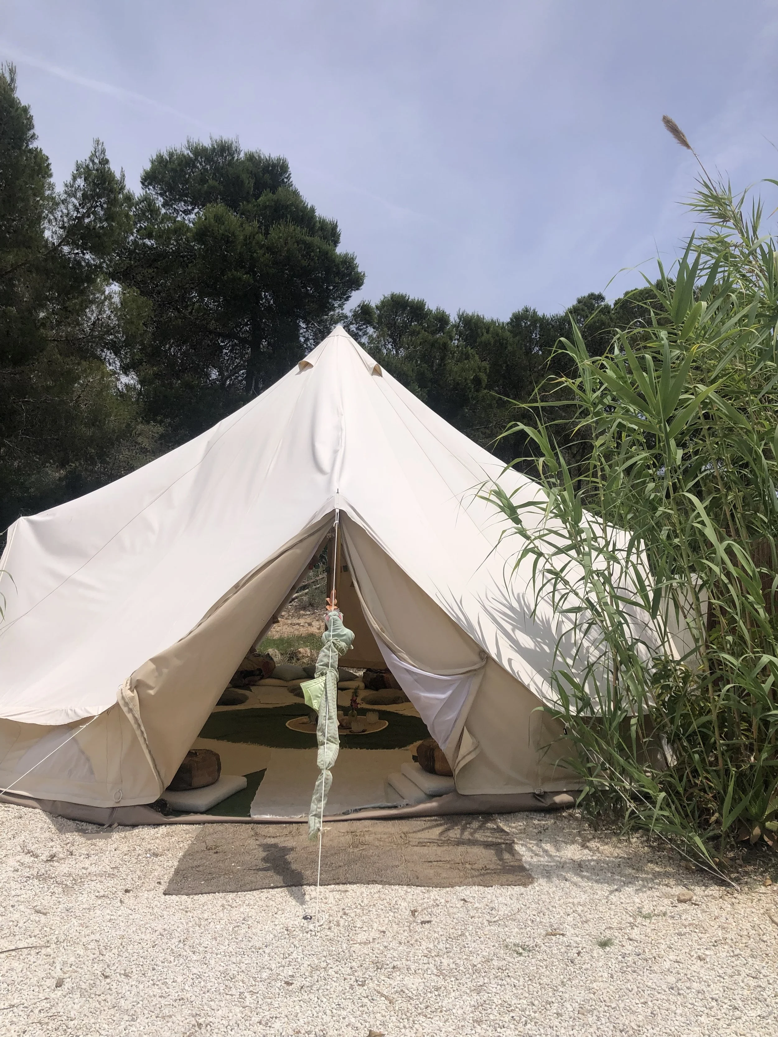 💙 Ceremony - meditation in the tepee with Las Hijas de la Tierra - "Meditation of the 4 elements": We will connect with fire to activate the inner flame, with water to purify and release emotions, with the air and the fumes of copal and our voice, and with the earth and its crystals as a frequency to enlighten the body.