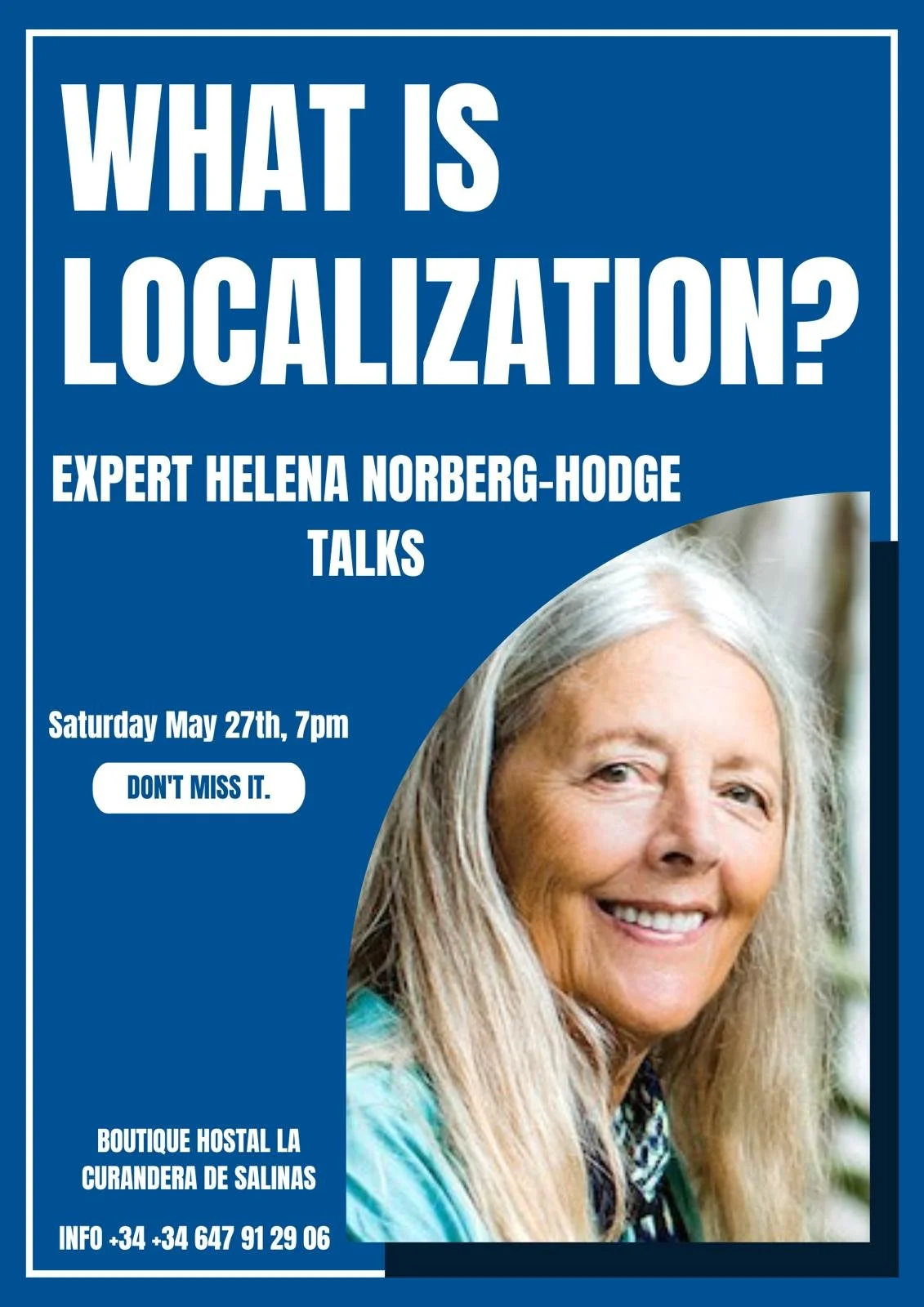 Este año estamos particularmente emocionados ya que hemos sido bendecidos con la presencia de *HELENA NORBERG-HODGE*, la súper mujer que fundó el Movimiento de Localización hace décadas y ha trabajado incansablemente para despertar a la humanidad y concientizar sobre los abusos de las corporaciones multinacionales. Ella compartirá con nosotros su conocimiento en una charla inspiradora a partir de las 7pm. No pierdas esta oportunidad única de empoderarnos todos obteniendo soluciones prácticas para atravesar esta fase insostenible que atraviesa la humanidad. Aquellos de ustedes que vinieron en noviembre para la charla de Satish Kumar, la reconocerán del documental Planet Local que proyectamos al comienzo de la noche.